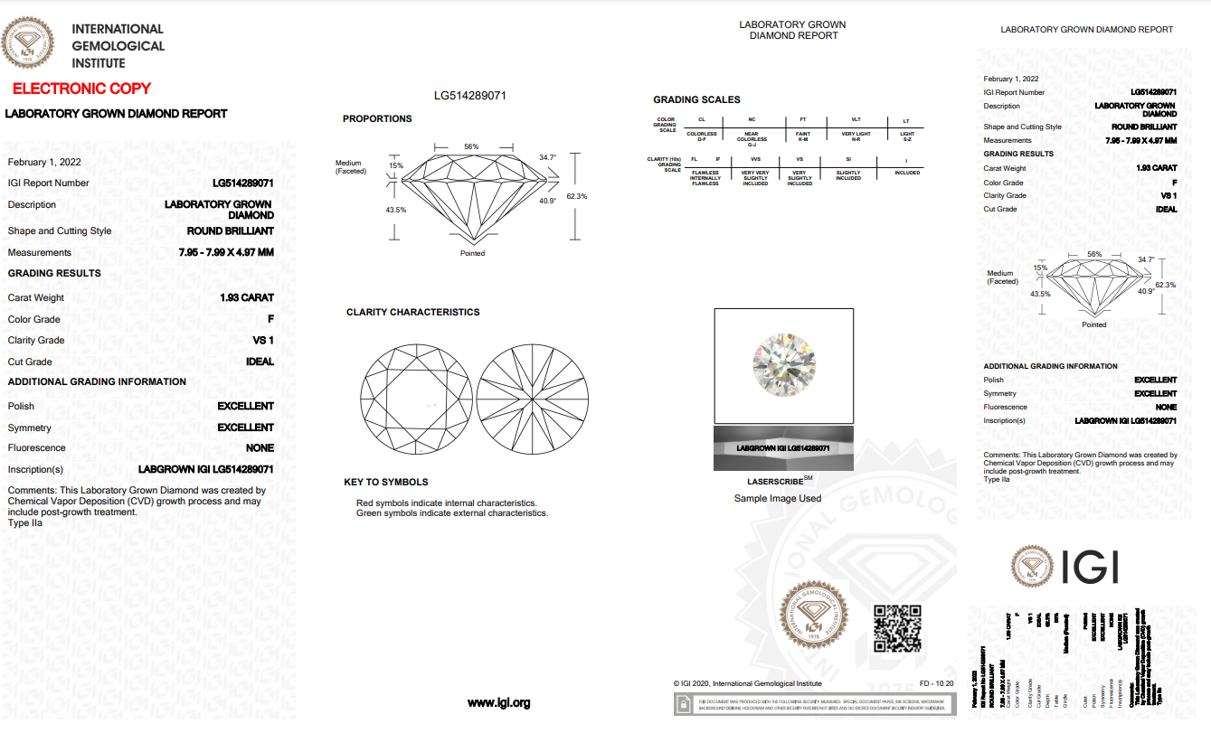 1.93 carat IGI Graded Lab-Grown Round Diamond