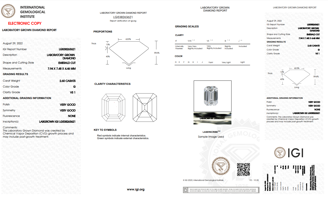 2.60 carat IGI Graded Lab-Grown Emerald-Cut Diamond