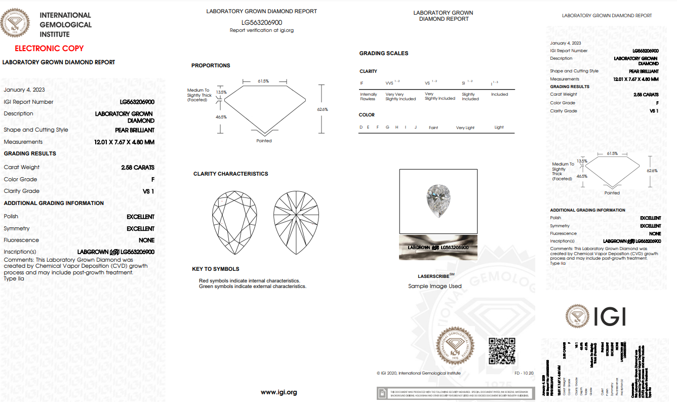 2.58 carat IGI Graded Lab-Grown Pear Diamond