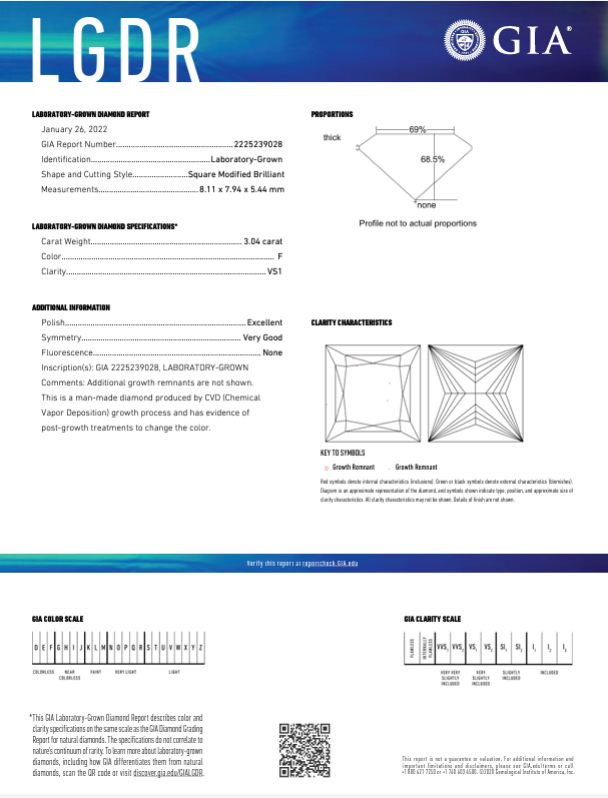 3.04 carat GIA Graded Lab-Grown Princess-Cut Diamond