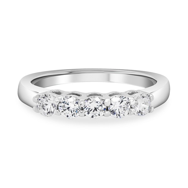 A beautiful shared-prong 5-stone diamond ring, with 3.00 mm Round Brilliant-Cut Diamonds. Perfect as a wedding ring, anniversary present, or for everyday stacking.