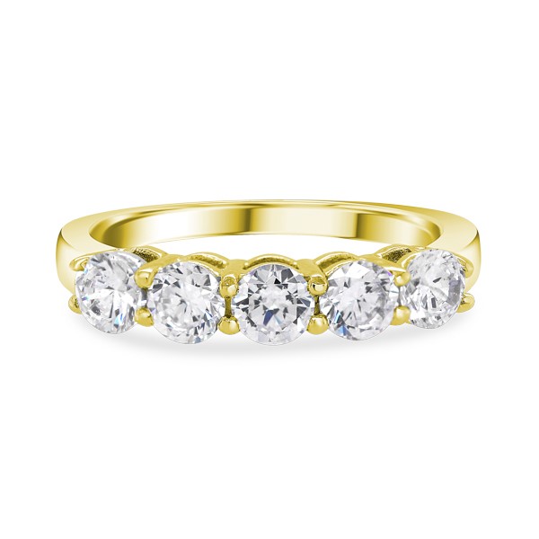 A beautiful shared-prong 5-stone diamond ring, with 3.50 mm Round Brilliant-Cut Diamonds. Perfect as a wedding ring, anniversary present, or for everyday stacking.