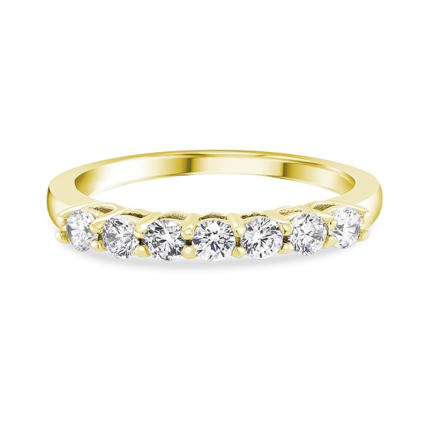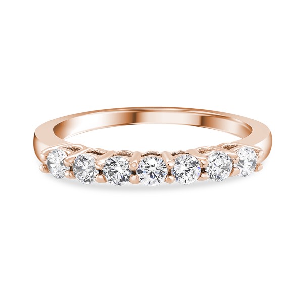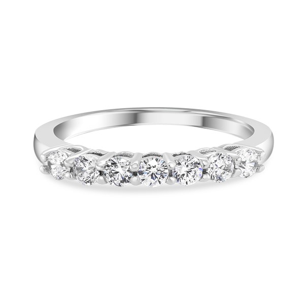 A beautiful shared-prong 7-stone diamond ring, with 2.50 mm Round Brilliant-Cut Diamonds. Perfect as a wedding ring, anniversary present, or for everyday stacking.