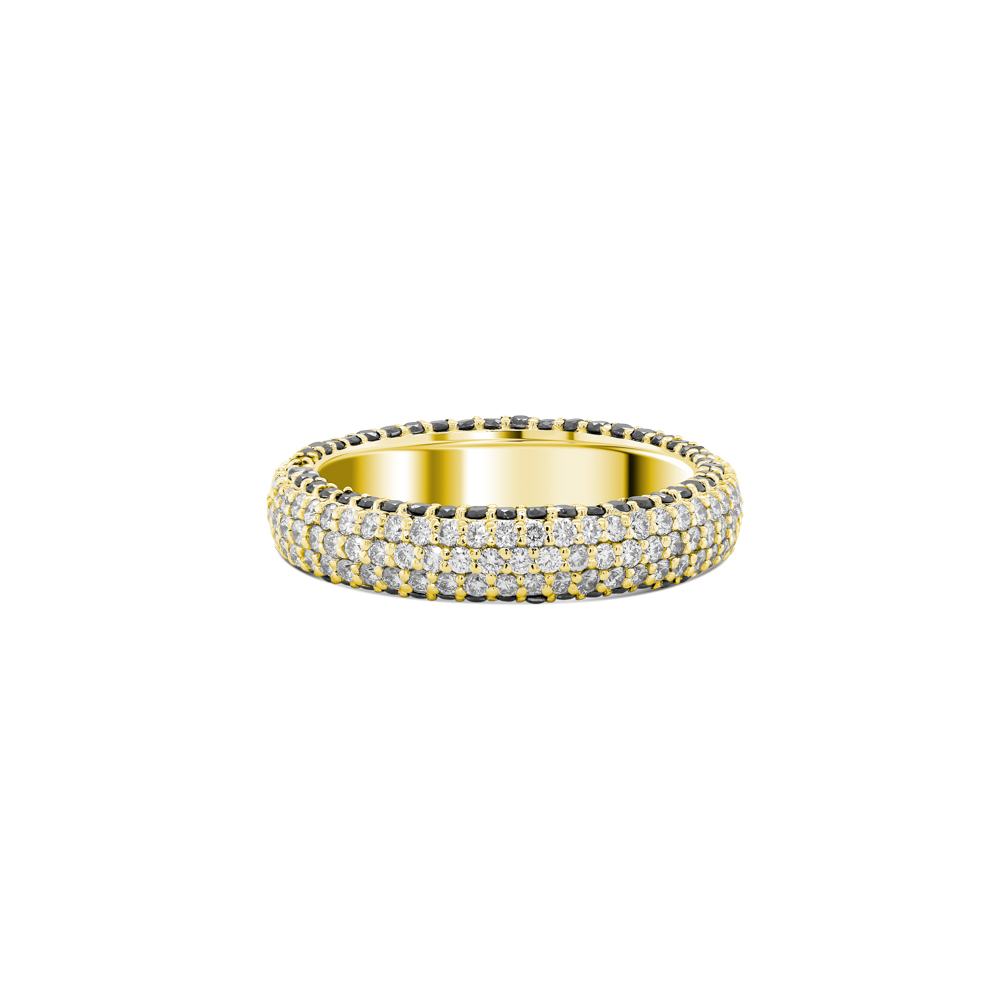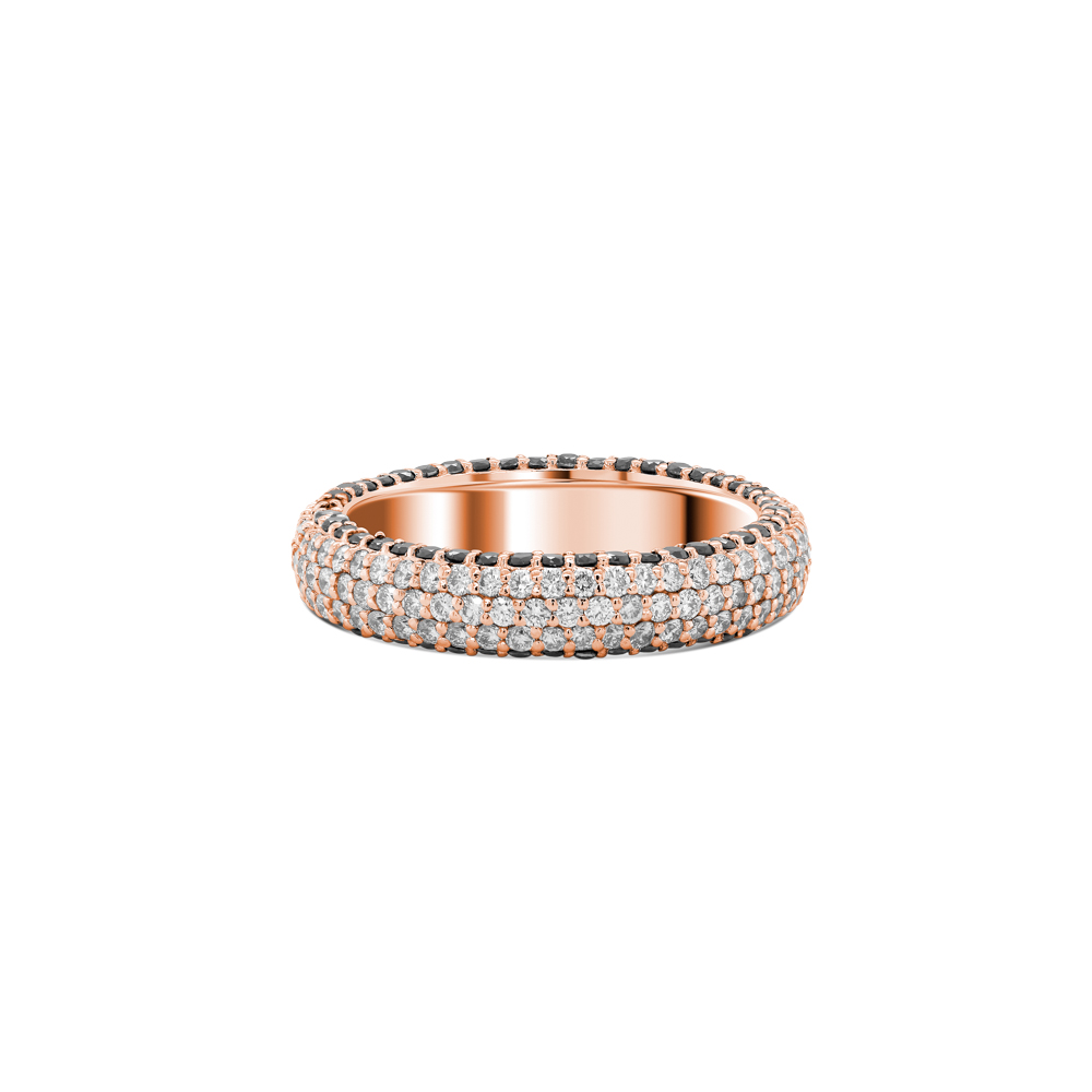 Comfort-ft diamond eternity ring with 153 x 1.30 mm white Diamonds totaling 1.75 carats and 94 x 1.30 mm Grade AA Black Diamonds, totaling 1.08 carats.
