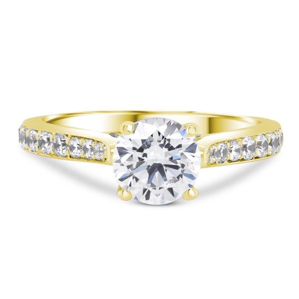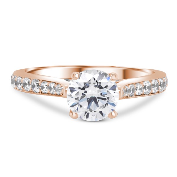 A cathedral-style setting with sixteen brilliant accent diamonds that increase in size as they move down the ring. A simply beautiful, timeless design.