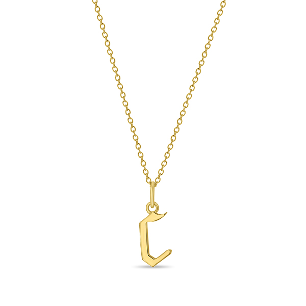 High-polished letter pendant in your choice of 14kt White, Yellow or Rose Gold. Price includes 1.00 mm wide, 16” Rolo chain in matching metal.