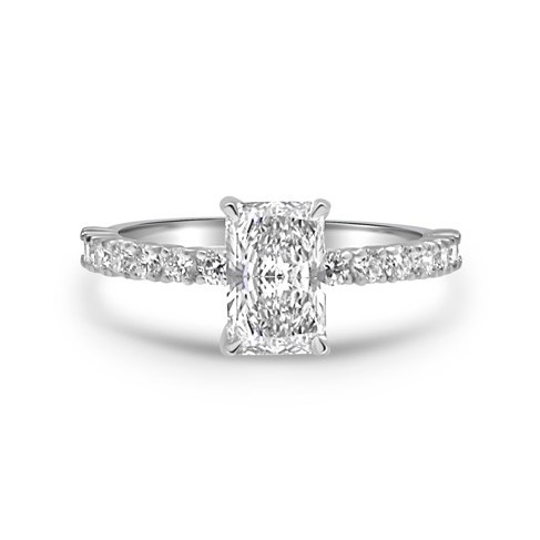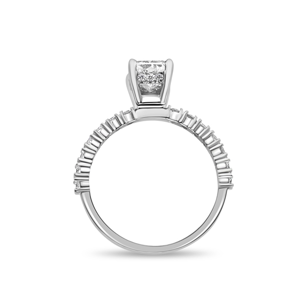 14 x 2.00 mm Diamonds on the shank totaling 0.45 carats and approximately 16 x 1.10 mm Diamonds (depending on your Center Diamond’s size and shape) on the hidden halo totaling 0.12 carats.