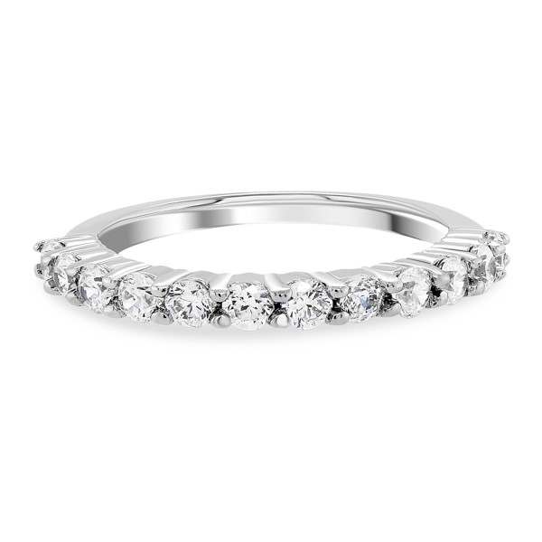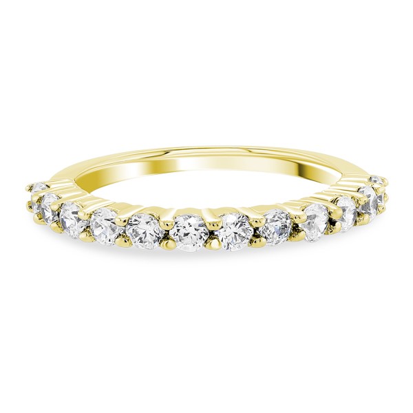 A beautiful shared-prong diamond ring, with 2.25 mm Round Brilliant-Cut Diamonds. Perfect as a wedding ring, anniversary present, or for everyday stacking.