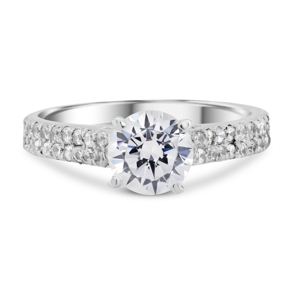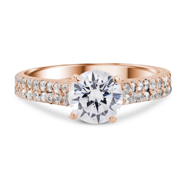 An elevated cathedral-style setting, closely flanking your Center Diamond, set with two rows of sparkling accent stones.