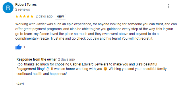 Rob and Sia, thank you so much for choosing Gabriel Edward to make your Engagement Ring! We wish you and your beautiful family a lifetime of health and happiness together.